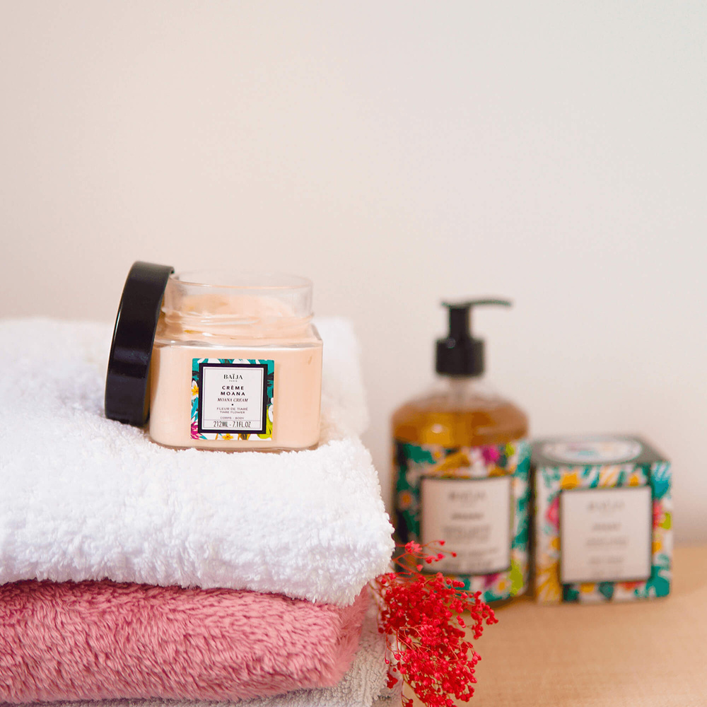 Notre Crème Corps Moana renferme une formule exclusive qui allie variété et concentration inédite d'ingrédients d'origine naturelle.