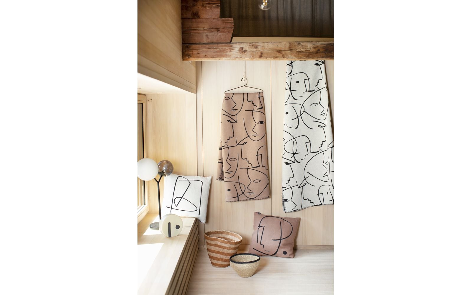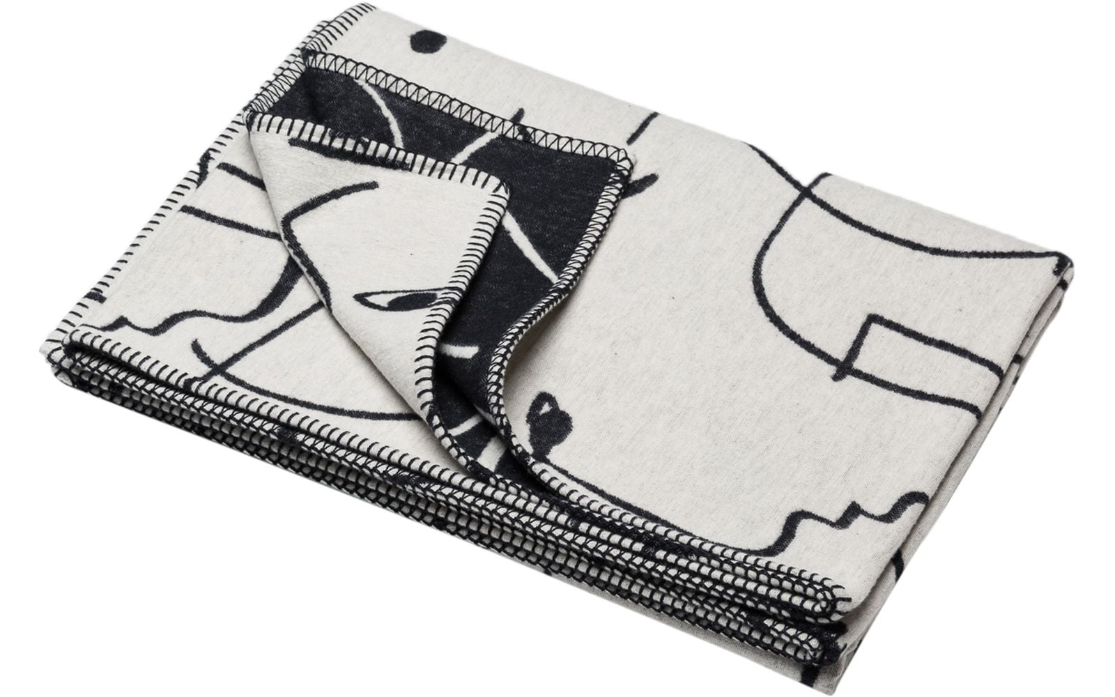 Plaid DAVID FUSSENEGGER Sylt à motif visage, de couleur écru et de dimension 140x200.